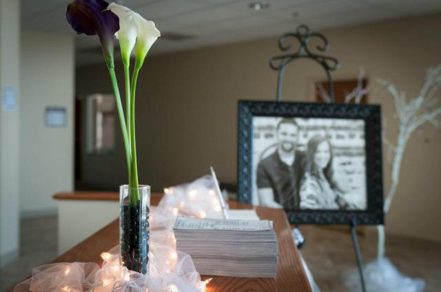 We set up a table of family pictures and an engagement album for guests to enjoy as they arrived. The food tables and the head table were adorned with flowing tulle and lights with mirrors for a reflected glow. (I’ll take a moment to say here that from a wedding planner’s standpoint I’m disappointed that I didn’t get more pictures than this, but oh well).