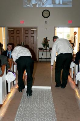 Next, lets talk aisle runners. My thoughts? Ditch the whole idea….NIGHTMARE! Ever see an usher sweat? Well, this will drive him to it.
